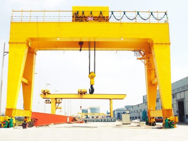 結構形式與MG型起重機基本相同,一側有支腿,在地面軌道上運行;另一側無支腿,在廠房上部的軌道上運行。