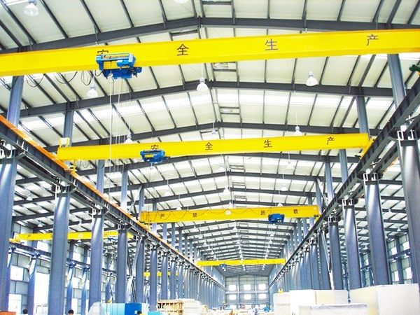 主梁及端梁為焊接箱型梁結(jié)構(gòu),下翼緣板作為電動(dòng)葫蘆運(yùn)行軌道,主梁與端梁采用高強(qiáng)度螺栓聯(lián)接,便于運(yùn)輸及現(xiàn)場(chǎng)安裝。